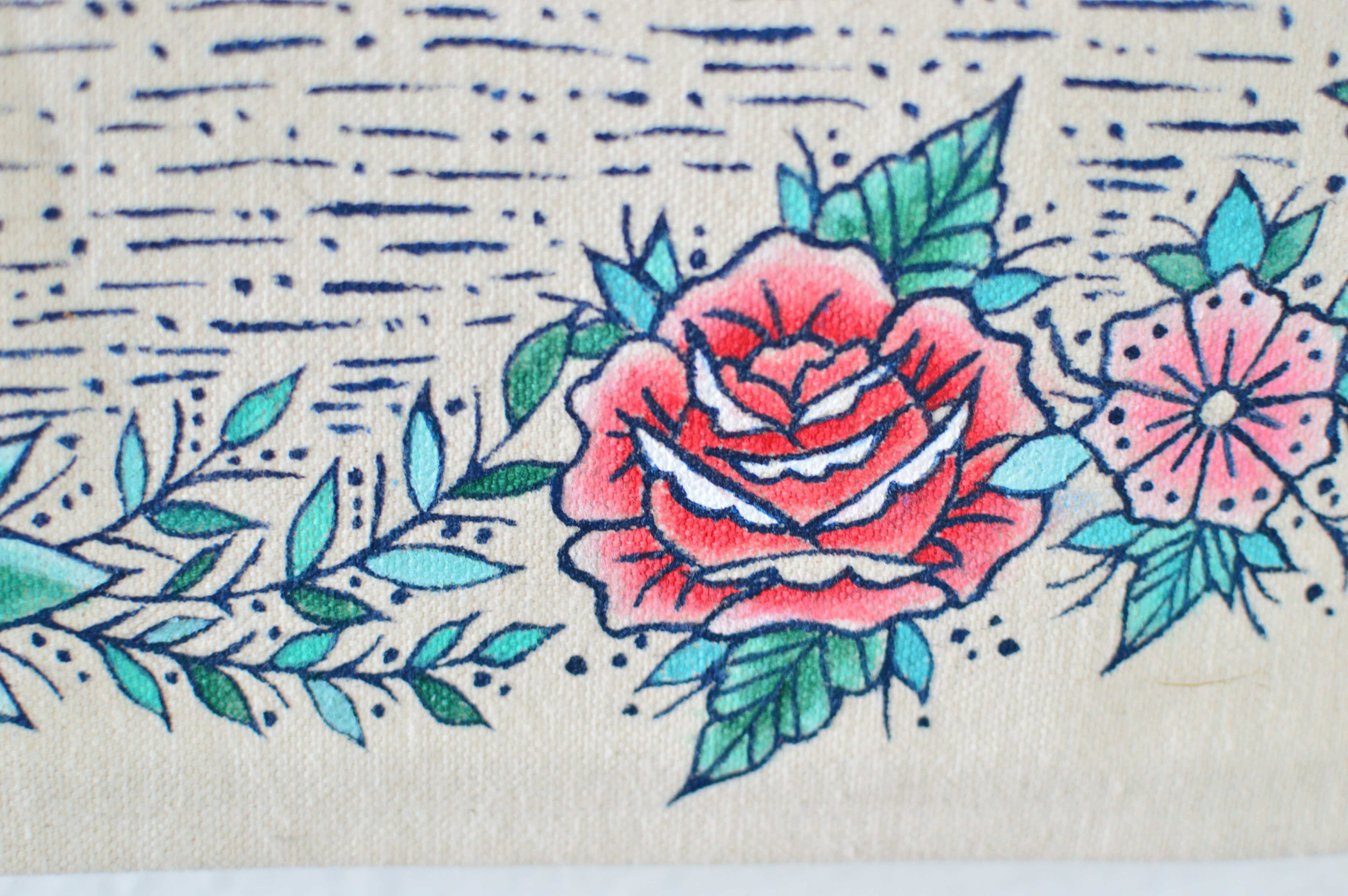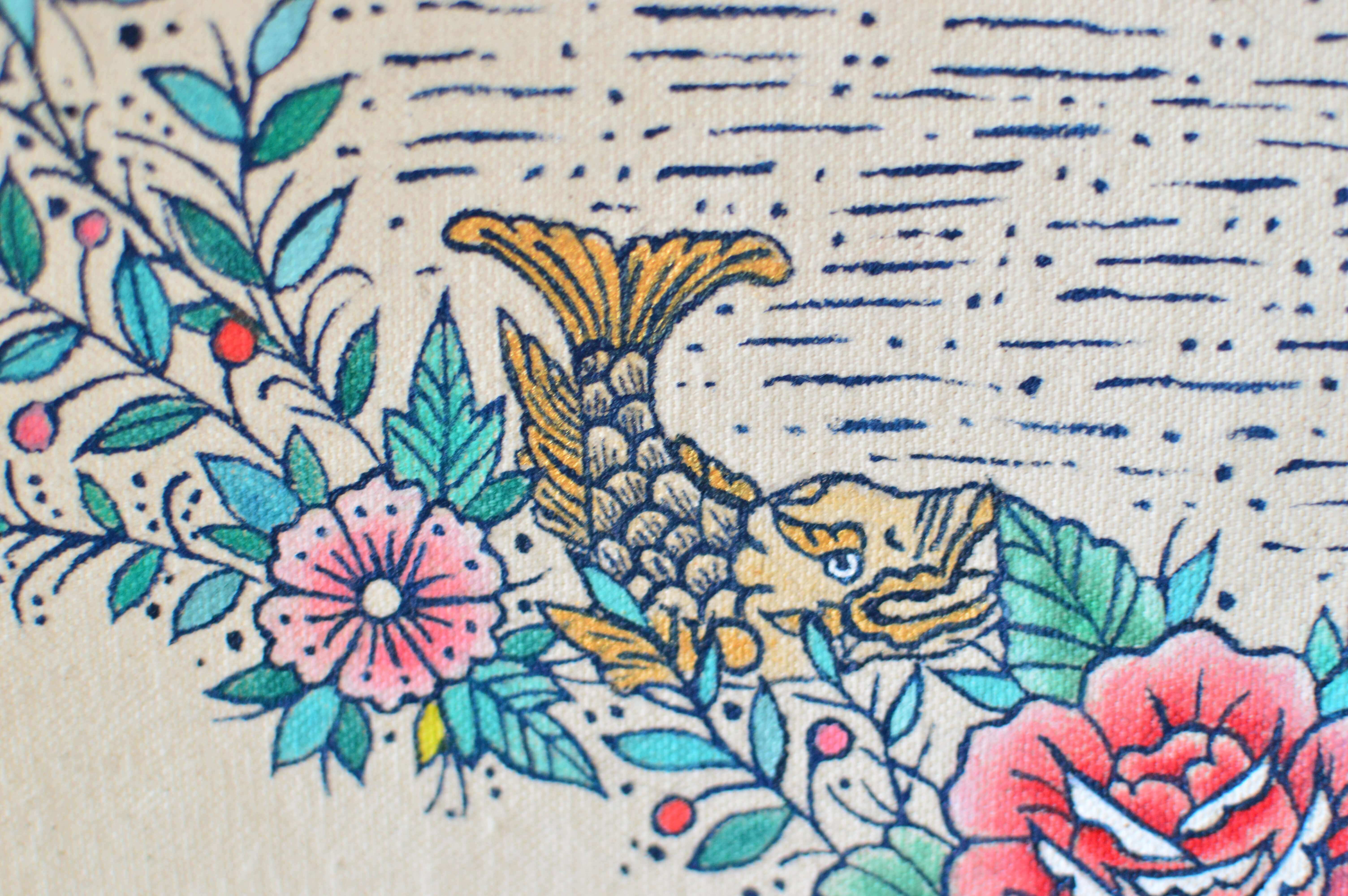 靴や帽子等の場合は既製品に絵付けをしていますが、タペストリー、ポーチ、一部トートなどの布小物系は、本体も私が作っています。