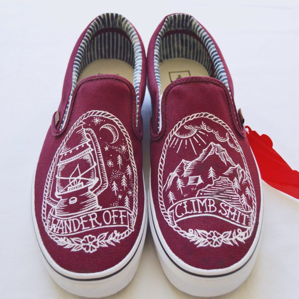 作品はアクリル絵の具で服飾品にオリジナルデザインを手描きで施すスタイルで、テイストは欧米のタトゥーアートにインスピレーションを受けています。