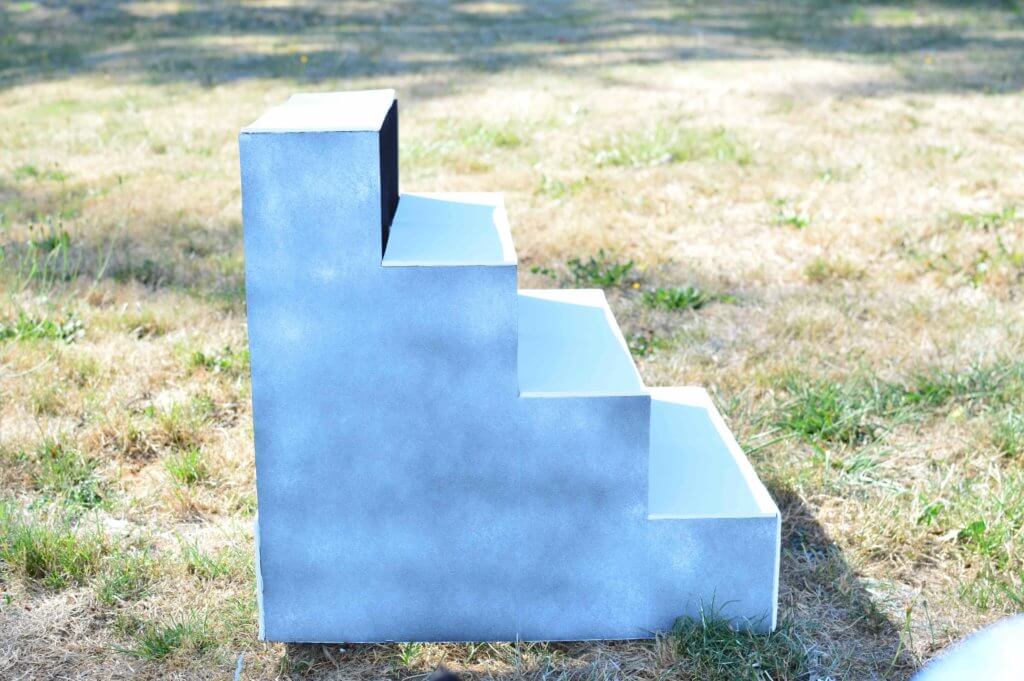 私は1段の高さと奥行きを同じサイズにして(各12cm/5インチ)、横幅は切らなくても良いようにボードの横幅(50cm)をそのまま活用しました。