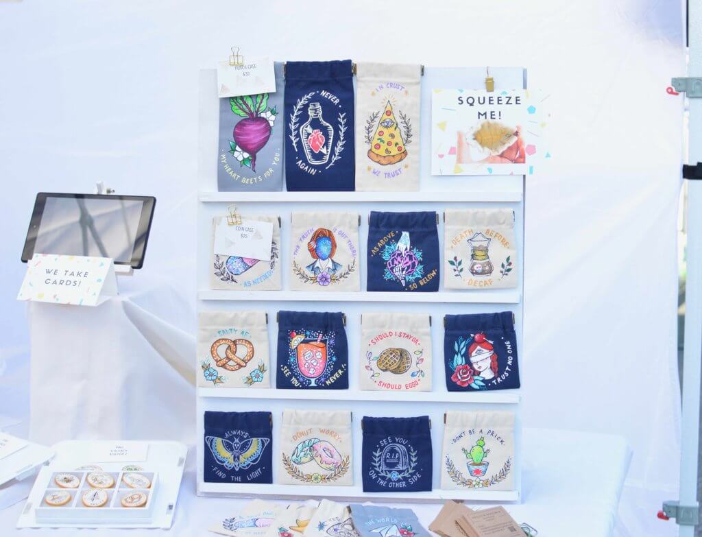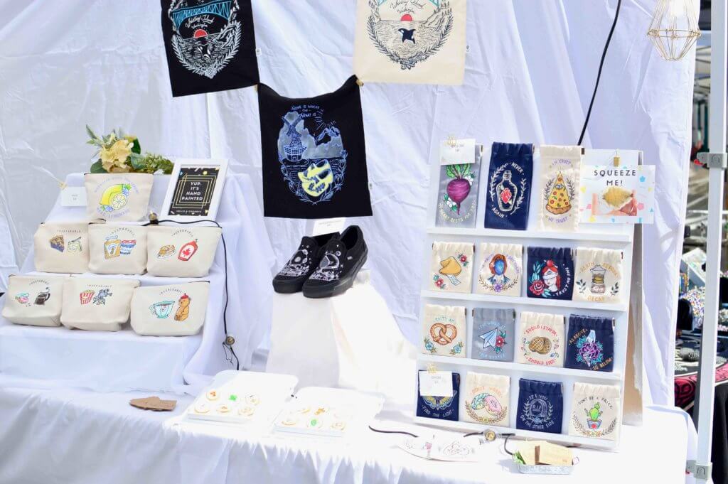 手描きで絵付けをしたアイテムを、自身のオンラインショップ HELLO & GOODBYEでメインに販売していますが、イベント出店する事もあります。