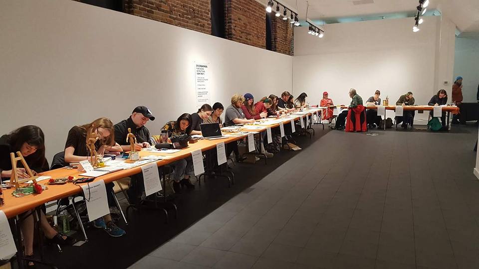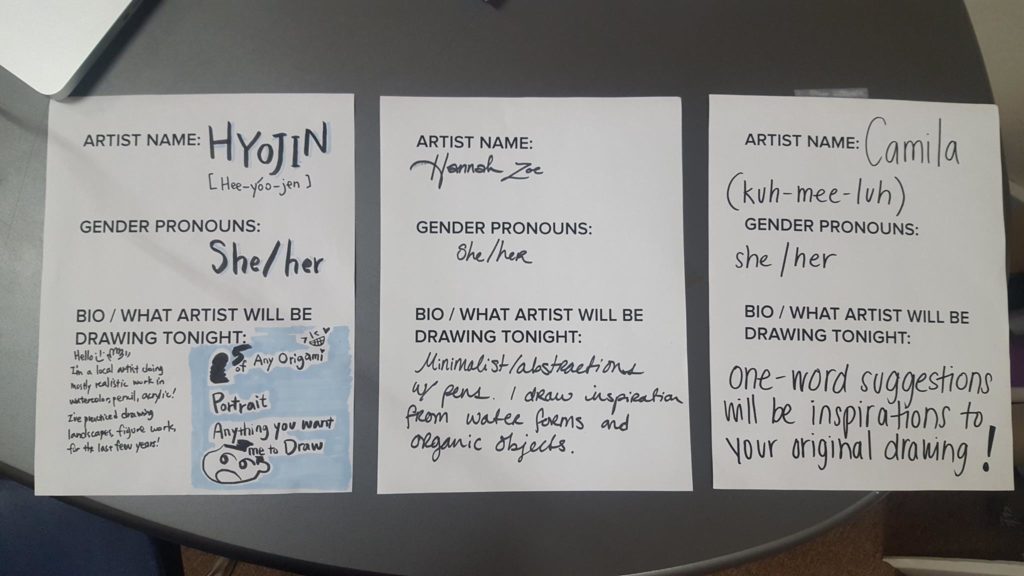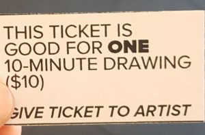 お客さんはチケットを1枚10ドルで購入し、好きなアーティストの所に行って10分のドローイングをして貰います。