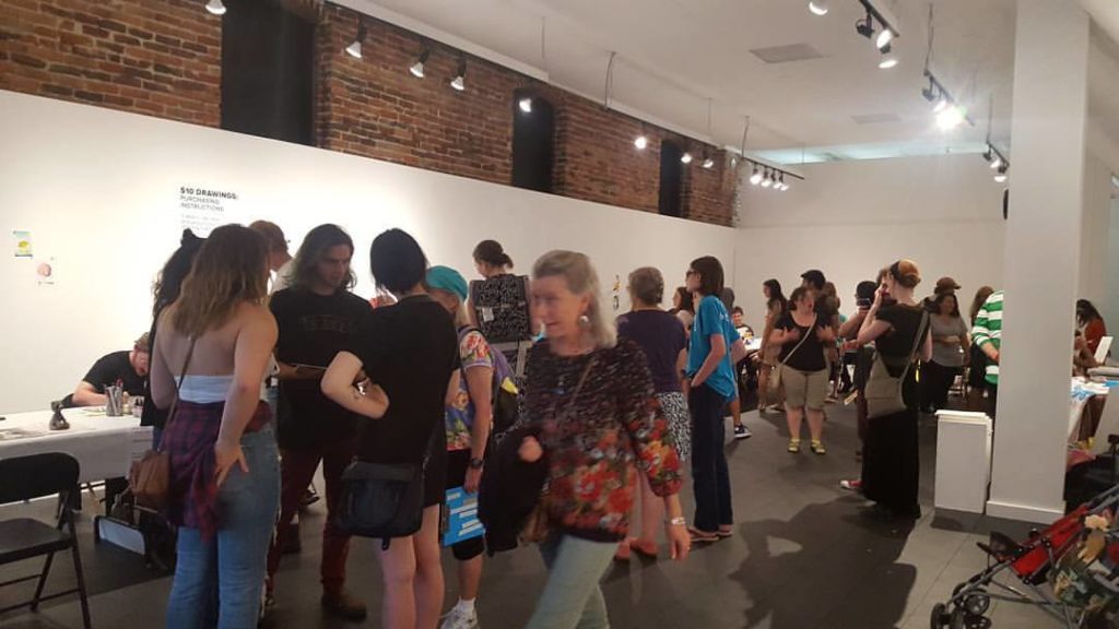 は、地元のアーティストが10分のライブ・ドローイングをして、その絵を買うと売り上げが支援先の団体に寄付されるという仕組み。