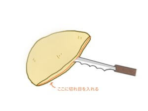 4. 半分にカットして、切り込みを入れて具が入る隙間を作る