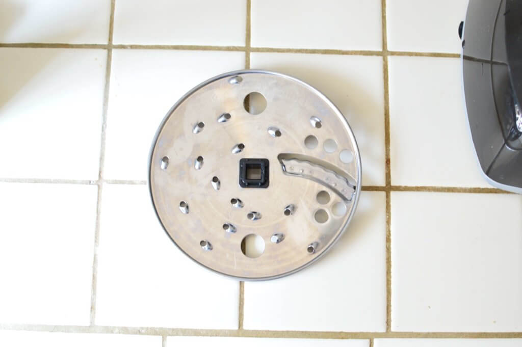 1. まずズッキーニをフードプロセッサーで千切りにして、塩を大さじ1(分量外)ふりかけ15分程放置。