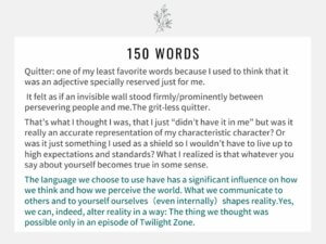 ウィットに富んだ描写、皮肉まじりのクスッと笑える言い回し、教科書には載っていないスラングやイディオムを使い「こなれ感」をプラスします。 - 文章全体へのフィードバック