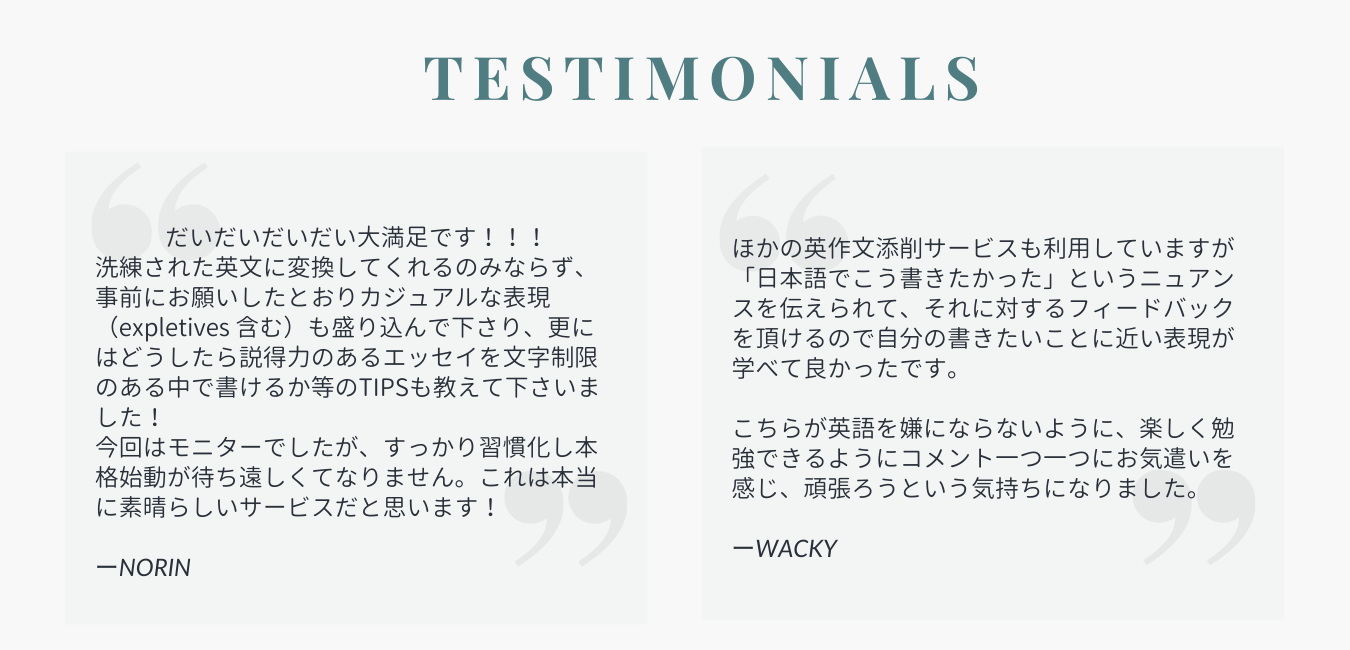 文法の誤りなどの添削はありますが、あくまで「代替表現の提案」がメインになっております。