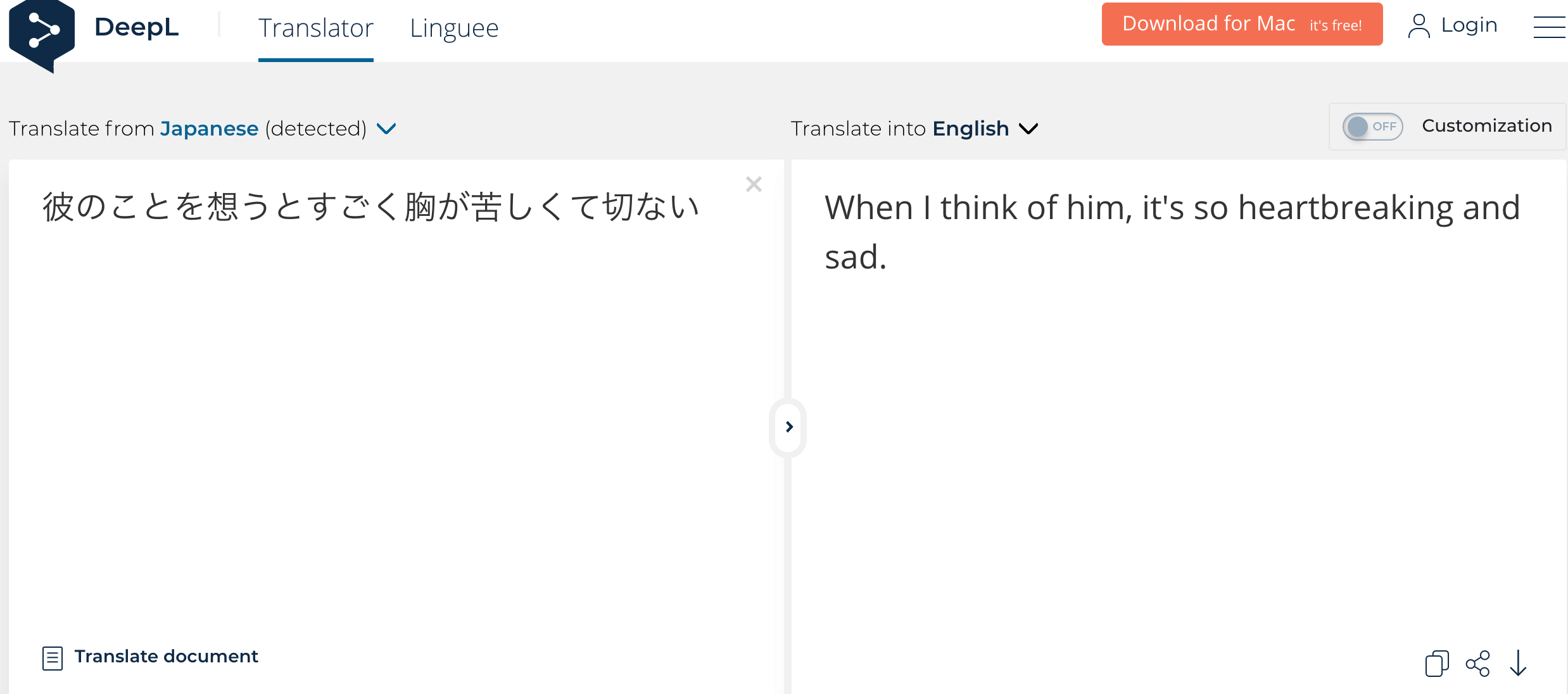 DeepLは機械翻訳ツールなのですが、とってもクォリティの高い対訳が特徴です。